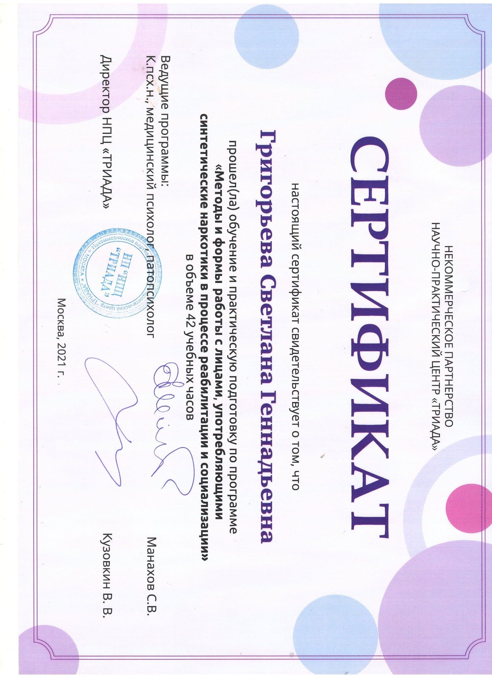 Психосоциальная программа реабилитации лиц с химической и нехимической зависимостью